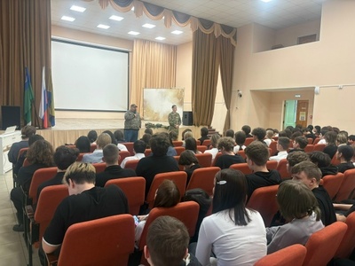 Перед учениками выступили: Роман Андреевич Ежов – участник специальной военной операции, боец добровольческого формирования «Барс-17», заместитель председателя региональной общественной организации ветеранов СВО ХМАО-Югры «Братство» и заведующий молодежного центра «Формат», лектор Общества «Знание»Владислав Сергеевич Брылеев.