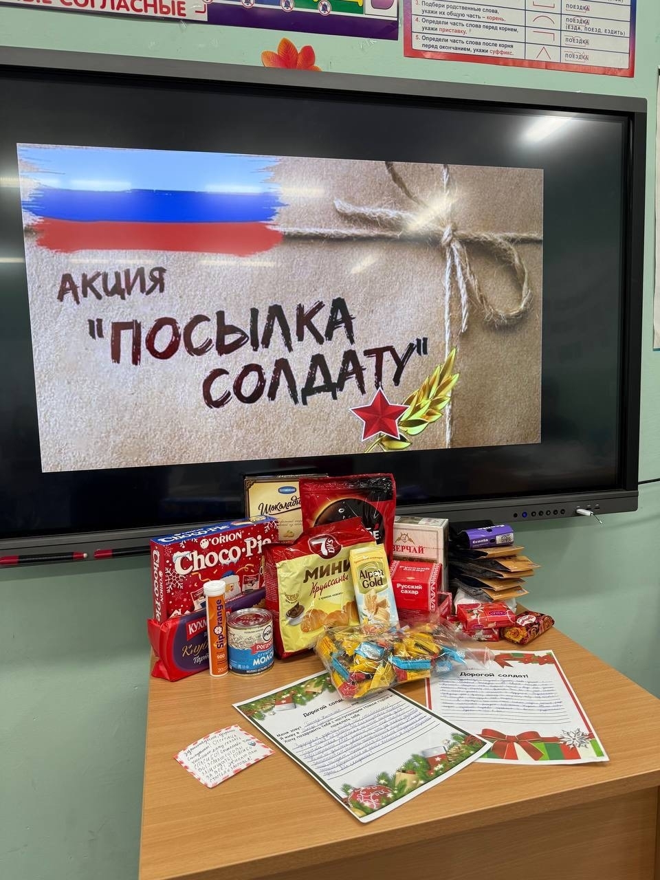 В рамках данной акции мы собираем продукты длительного хранения и средства гигиены для мирного населения, а также индивидуальные наборы «Посылка солдату» - продукты длительного хранения, средства гигиены, сезонные носки; в каждый набор включается детское письмо/рисунок с поддержкой от учащихся нашего региона.