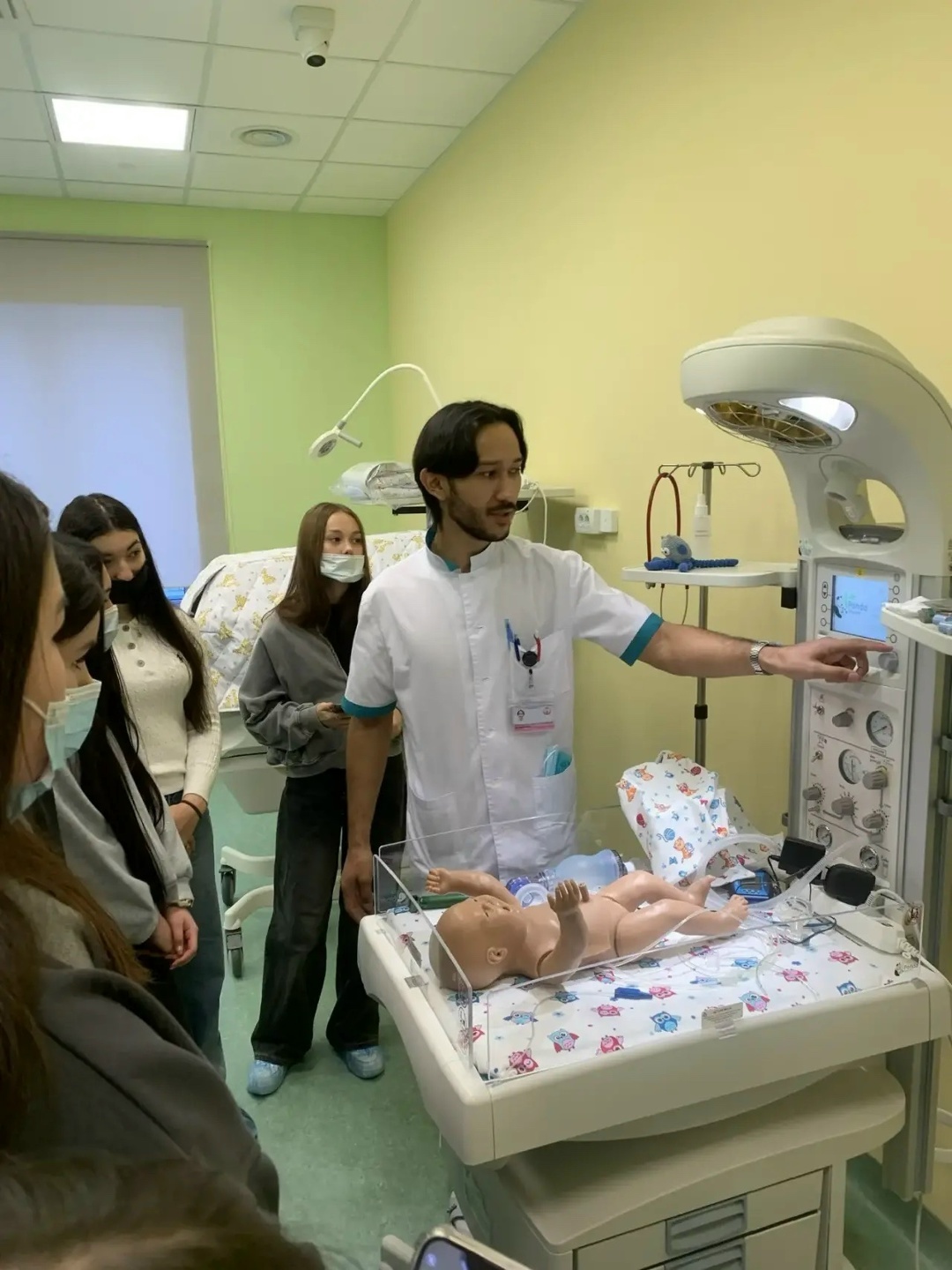 Будущие врачи учатся проводить первичные процедуры с младенцами: оценивать состояние по шкале Апгар (8–10 баллов — норма), обеспечивать тепло и влажность. Недоношенные дети помещаются в инкубаторы, где им создают комфортные условия.